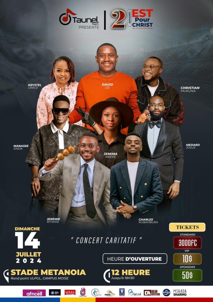 Le 14 juillet 2024 au stade Metanoïa de l’ULPGL Goma, la structure Chrétienne Talents Unis pour l’Eternel, Taunel, sera sur le podium pour son événement annuel dénommé «Est pour Christ» qui aura un cocktail d’artistes internationaux, nationaux et locaux à Goma.